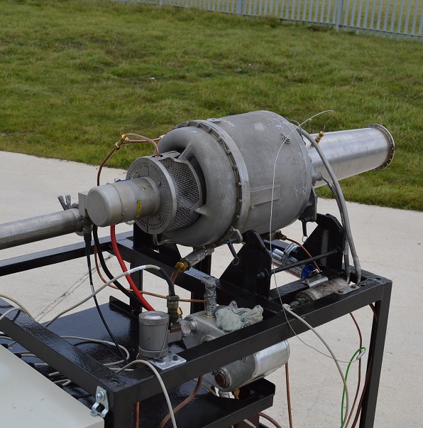The gas generator can then be run as a turbojet engine generating some 3kN of thrust. The turbojet rigs provide from small scale up to full scale testing of nozzles depending upon the application (0.16m diameter). |