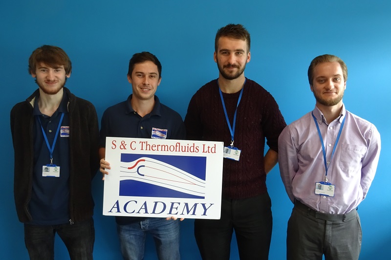 In 2015, S & C Thermofluids trialled a summer Academy for four undergraduate and graduate students. The intention was to provide a vibrant working environment to stimulate innovative ideas and research, as well as to provide training facilities and materials to young engineers wishing to gain experience from an industrial placement. The students selected came from a variety of University courses – from Aerospace Engineering to Mathematics – which provided a wide skill set including theoretical, design and practical knowledge.